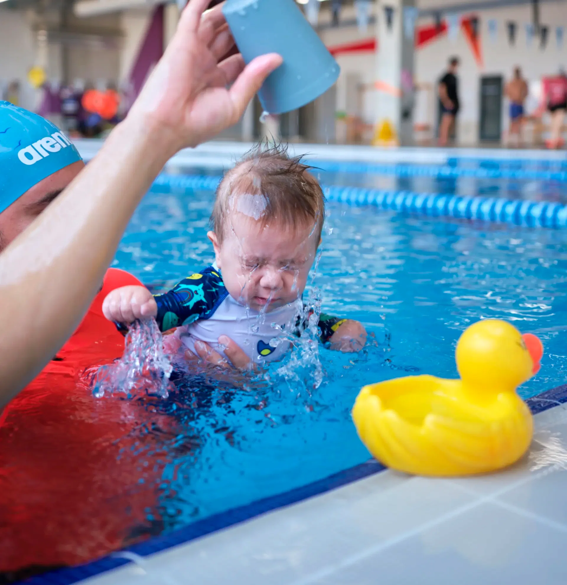 Bebekler alışkanlıkları sever, bu yüzden onları suya önceden alıştırmak faydalı olacaktır. Birlikte banyo yapmak veya duş almak harika bir başlangıç noktası olabilir. Banyoda yapılacak aktiviteler hakkında eğitmenlerimiz size rehberlik edecektir.